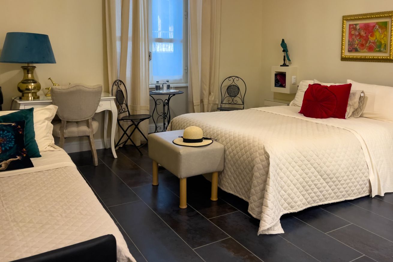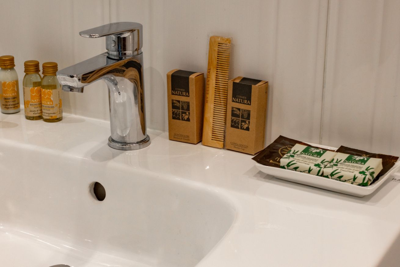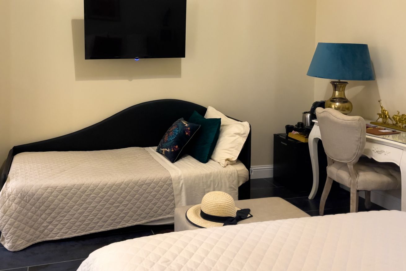 Camera doppia con WIFI gratuito, TV a schermo piatto, canali satellitari, frigobar, cassaforte, asse e ferro da stiro, kit di benvenuto con prodotti esclusivi da bagno, accappatoio e pantofoline, asciugacapelli, bollitore con set di ottimo thè, macchina per il caffè e acqua minerale in bottiglia gratuiti. La stanza evoca, nei suoi colori e arredo, il maestoso vulcano che si staglia sul Golfo di Napoli.